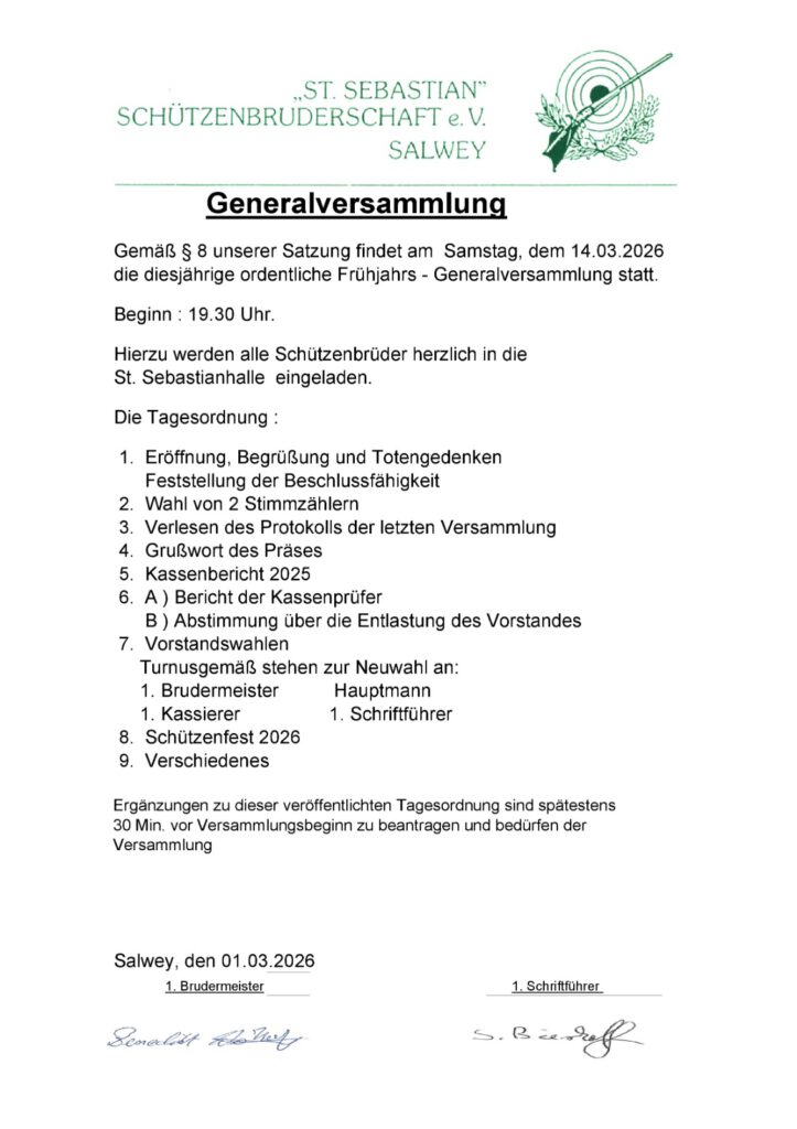 Die Gewinne können am Dienstag, den 17.02.2026 von 17.30-19.00Uhr oder am Samstag, den 21.02.2026 von 16-17 Uhr in der Schützenhalle abgeholt werden.